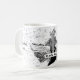 Black white Rock star electric guitar wings custom mug, featuring an electric guitar, wings, flames and swirls in black and white.