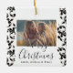 Black White Rococo Merry Christmas Script Photo Ceramic Ornament