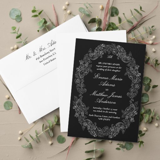 This design is part of a gothic wedding stationery suite designed with botanical ornament illustrations. In this collection you'll find romantic crest monograms, botanical wreaths and victorian inspired calligraphic fonts.