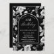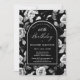 Very elegant black and white rose floral pattern creates an 60th birthday invitation template. White text and calligraphy are framed by a black arch edged in white. Available in cardstock or as a digital download. This item is part of the Black and White Rose Floral Collection. it contains templates to create a unique invitation suite, welcome signs and party decorations.