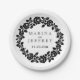 Black white rose wreath modern floral wedding paper plate