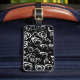 A black and white roses design. This unique luggage tag should be easy to identify your suitcase at baggage claim.