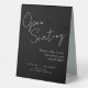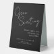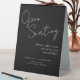 This modern, minimalistic wedding open seating sign features an elegant script front. The design plays with the simplicity of a black and white typography design. It's the perfect choice for couples who appreciate clean and modern elegance.