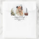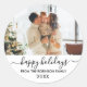 Black White Script Family Photo Happy Holidays Classic Round Sticker