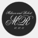 Black White Script Monograms Wedding Favour Sticke Classic Round Sticker