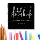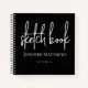 Black and White Elegant Personalised Sketchbook with Your Name in Hand Lettered Script Font Typography. Elke Clarke© Add you name or monogram or name text using the customise menu for artists, artwork