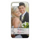 This modern, personalised, black and black and white scroll wedding photo Case-Mate Barely There™ iPhone 7 Case has a spot for you to add the names of the bride and groom and their wedding photo. Everything will print as you see it on your monitor. If you need assistance personalising this case, email niteowlstudio@gmail.com.