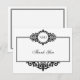 Black white scroll monogram thank you note flat card