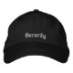 Personalised Security black Baseball Cap, embroidered white. Business and office idea. Can be customised with an employee name or company logo.