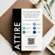 Black and white side stripe, colour block wedding attire card with colour palette and QR code. Personalise it with your event details.
