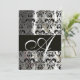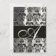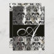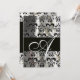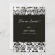 BLACK WHITE SILK DAMASK MONOGRAM SILVER INVITATION