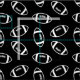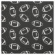 American football fabric with a simple design of the outline of footballs in white against a black background.