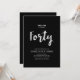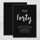 Celebrate your special day with this simple stylish 40th birthday party invitation. This design features a chic brush script with a clean layout in black & white colour combo. More designs available at my shop BaraBomDesign.