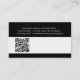 Simple modern black and white business card with lots of information and a QR code. For IT professionals, accountants, system administrators, engineers etc. Minimalist and informative.