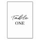 A simple minimalist white background and black script text "table" wedding table number that can be customised to each of your tables numbers. Customise the number and purchase each tables number individually according to how many table numbers you need.