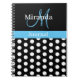 Black White Sky Blue Monogram Script Polka Dots Notebook