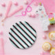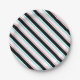 Black White Slanted Regimental Stripe Lines Paper Plate