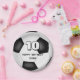 These soccer themed birthday party paper plates are fully customisable and feature the realistic image of a soccer ball that has black and white panels - personalise with your custom text - by katz_d_zynes