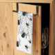Black and White spider web Halloween kitchen towel. Cool fun pattern with Spooky Halloween cobweb design. Custom white with big and small scary crawling spiders.