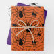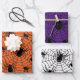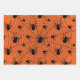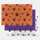 Black and White spider web Halloween Wrapping Paper Sheets. Party Supplies and Crafts with elegant cool fun pattern. Spooky Halloween cobweb design on custom white, orange and purple. Holidays design with big and small scary spiders.