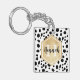 Stylish Dalmatian spots pattern with a faux gold foil label featuring customisable name and monogram templates. A cute monogrammed keychain with black and white spots pattern and golden elements. To change the font colours and font styles click the "personalise" button and then click the "customise further" button.