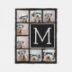 Black & White Square 8 Photo Collage Monogram Fleece Blanket
