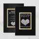 Black White Star Gold Heart RSVP simple elegant Card