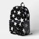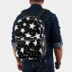 Introducing a chic and trendy backpack adorned with a black and white star print. This eye-catching accessory not only makes a fashion statement but also offers the unique option to personalise it with your name, ensuring that it reflects your individual style while keeping your essentials organised and accessible. Perfect for school, work, or outings, this stylish backpack combines functionality with a playful flair.