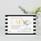 Cute and hip baby shower invitation with black and white stripes with faux gold foil accents.