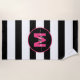 Black White Stripe Hot Pink Name Monogram Beach Towel