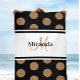 Black White Stripe Script Monogram Brown Polka Dot Beach Towel