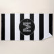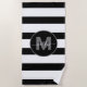 Personalised Elegant Modern Black and White Striped Script Monogram Beach Towel. Add a chic and timeless touch to your poolside or boating experience with this stylish monogrammed towel. Featuring bold, chunky black and white stripes, the design is centred with a sophisticated script monogram inside a circle. The initial and the circle’s border are in sleek grey, creating a striking black-and-white design that’s both elegant and modern. All colours can be customised to suit your personal style or match your coastal or nautical decor. Perfect for lounging by the pool, relaxing on a boat, or enjoying a bachelorette girls' weekend, this towel combines functionality with preppy flair. It also makes a thoughtful gift for birthdays, holidays, or any special occasion, ideal for anyone who loves personalised and stylish accessories. A must-have for those who adore a sleek and timeless aesthetic!