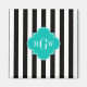 A stylish, modern, chic striped pattern in black and white. Customise the teal quatrefoil label with a three initial monogram or change the design to add your name or other text. (Click on "Customise it" to change the font, adjust font sizes, font colours, add additional text fields, etc.)