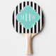 Black White Stripe Turquoise Quatrefoil 3 Monogram Ping Pong Paddle