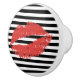 Black & White Stripe with Red Lips Drawer Pull
