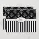 Classic elegance in black and white stripes and baroque pattern with a place to add your name or monogram, or whatever you like. Great for weddings.