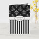 Classic elegance in black and white stripes and baroque pattern with a place to add your name or monogram, or whatever you like. Great for weddings.