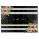 This personalised cutting board features a pattern of black and white stripes with gold accents, a bouquet of blush pink and orange watercolor flowers and greenery with a place for a name or other custom text of your choice. Font styles, colours and more can easily be changed by clicking "edit design" or “customise further”. Many other product options with this design are available in my store with more arriving daily. Be sure to follow me for new product updates. Thank you for choosing SapphireDesigns!
