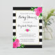 Black White Striped Watercolor Floral Baby Shower Invitation