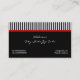 Black white stiped pattern with red bow and jewel business card template that features a black and white pattern with vertical stripes and a red ribbon across it with a bow and a heart shaped jewel also in red with gold outline and strass which adds a little bling. Note the bow and the heart diamond jewellery is a "printed on" illustration and not a real crystal, so are the strass. An elegant and stylish feminine business card design. Trendy, fashionable and modern perfect for professional or personal use.