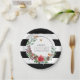 Black & White Stripes Christmas Robin Wreath Paper Plate