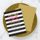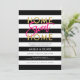 Chic Housewarming Party invitation featuring the words "Home Sweet Home" in sans serif faux gold foil brush script and pink trendy script all against a black and white stripes background. Card has a gold like color back side. Check out other new home items here https://www.zazzle.com/rosewoodandcitrus/new%20home?rf=238364477188679314