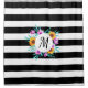 Black & White Stripes Flowers Custom Monogram Shower Curtain