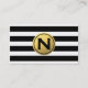 Black White Stripes Gold Foil Circle Business Card. Customise with any text.