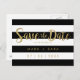 Black & White Stripes Gold Foil Save the Date Announcement Postcard