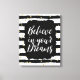 Black White Stripes Gold Sparkly Confetti inspirational believe in your dreams quote