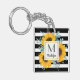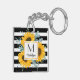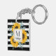 Black White Stripes Gold Sunflower Personalised Key Ring