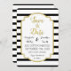 Wedding save the date announcement card with classic black and white stripes pattern and vintage gold details. Customisable with your wedding details, available in a wide range of matching wedding products. Contact us to request a colour change or a custom product.