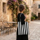 Black white stripes modern shopping bag.