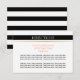 This simple yet chic wedding directions card showcases a black and white striped pattern on the back. On the front there is a black stripe on the upper and your wording is on a white band with a gold stripe.